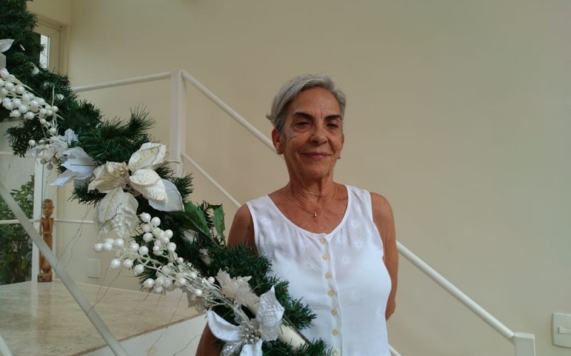 "Sou uma pessoa para cima. Já tive tumor no cérebro. Operei. Agora estou ótima. Faço crochê, tricô, faço comida, gosto de colorir livros para passar o tempo."