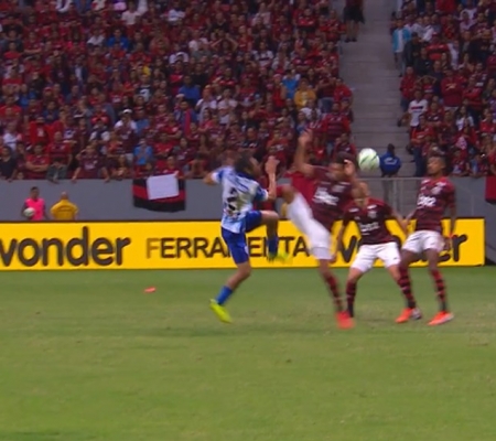Dirigentes chamam atenção para um pênalti não marcado no primeiro tempo. VAR foi acionado, e partida ficou parada por cinco minutos, no Mané Garrincha