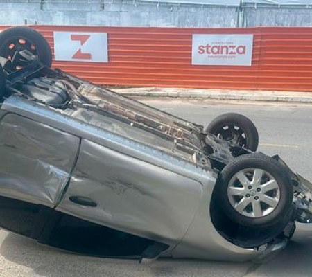 Carro capota após colisão transversal no bairro Coroa do Meio, em Aracaju