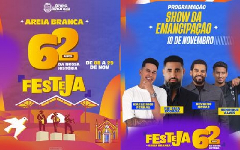 O município de Areia Branca, no Agreste sergipano, está prestes a viver uma grande celebração pelos 62 anos de emancipação política, e agora é oficial: as atrações antecipadas em primeira mão pelo Portal Itnet foram confirmadas pela Prefeitura.
