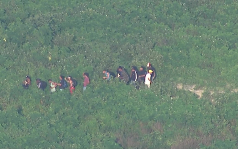 Os homens que circulavam pela mata carregavam armas e mochilas. Alguns estavam com roupas camufladas. Outros tentavam se esconder em um local onde há casas em construção.