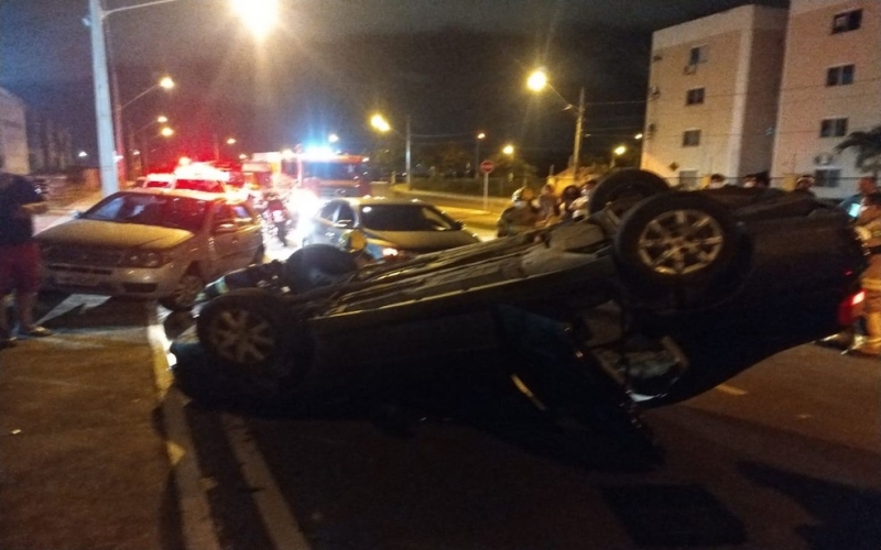 De acordo com a Companhia de Policiamento de Trânsito (CPTran), dois carros bateram entre si e depois atingiram um que estava parado. Um dos veículos capotou.