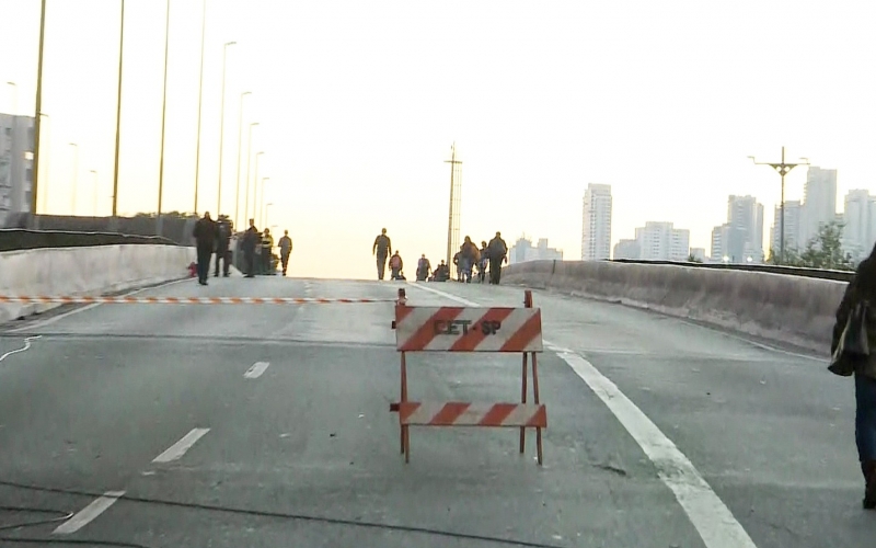 Ponte do Jaguaré continua interditada para circulação de veículos nesta segunda — Foto: Reprodução TV Globo