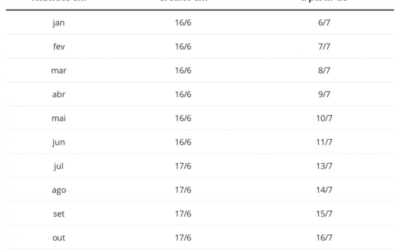 Veja o calendário: