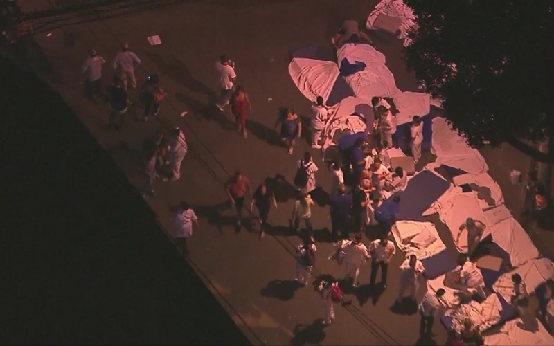Enfermeiros, médicos, bombeiros e moradores da região ajudaram a acomodar pacientes em colchões nas calçadas na Rua São Francisco Xavier e em uma creche vizinha.