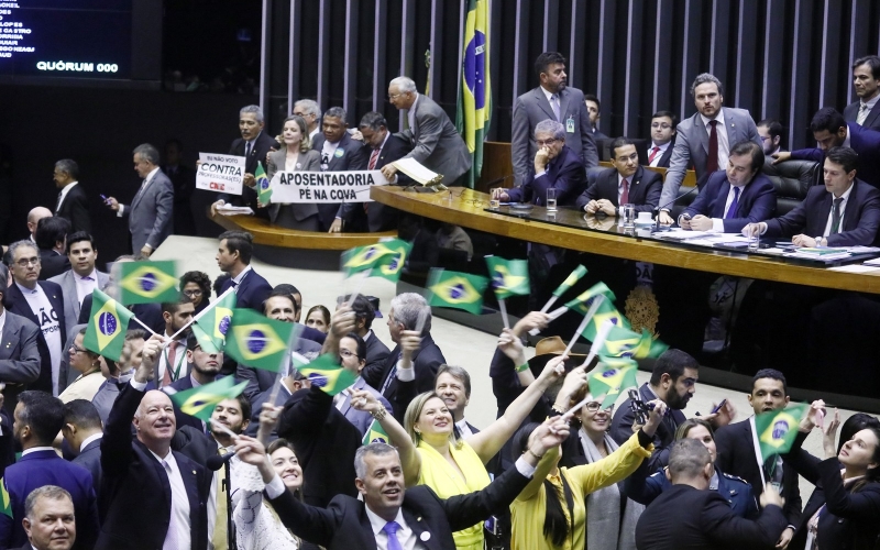 Parlamentares pró-reforma, por outro lado, repetiram que o texto combate privilégios e que é necessário para cobrir o rombo da Previdência. Eles também refutaram as falas de que a liberação de emendas foi feita em troca de votos.