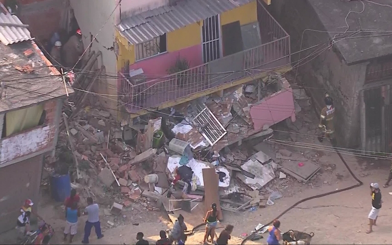 Em um dos pavimentos, os bombeiros tentam cavar os escombros. De acordo com as primeiras informações, duas pessoas estão desaparecidas.