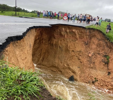 VÍDEO: Chuva abre cratera na BR-101 e trecho é totalmente interditado em Aracruz, ES