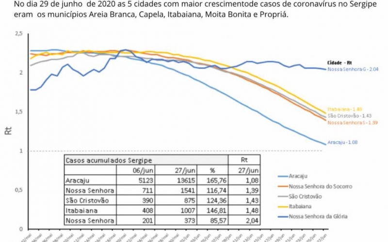 Em boletim, o Comitê Científico lembrou que o maior crescimento do novo coronavírus em Sergipe, além de Aracaju, continua se dando em Areia Branca, Capela, Itabaiana, Moita Bonita e Propriá.