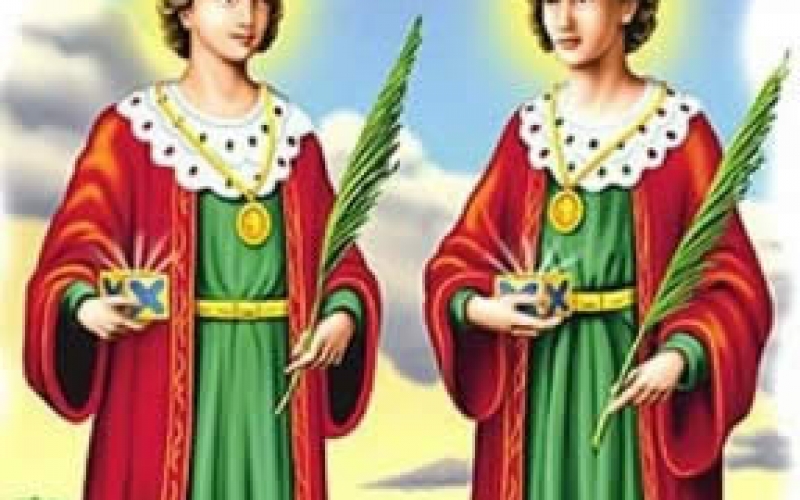 Os irmãos gêmeos Cosme e Damião nasceram no século terceiro na região da Ásia Menor, na Síria. Eram médicos e cristãos, na época o império romano não reconhecia o cristianismo e por isso foram perseguidos e mortos, decapitados.