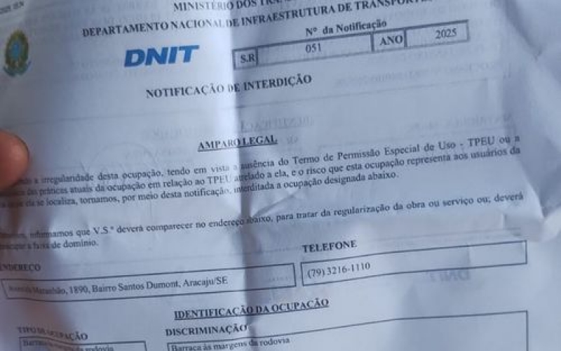 Segundo notificação encaminhada pelo órgão, nenhum dos ocupantes possuía o Termo de Permissão Especial de Uso (TPU), documento obrigatório para a utilização do espaço público. A irregularidade foi apontada como um risco à segurança dos usuários da rodovia.