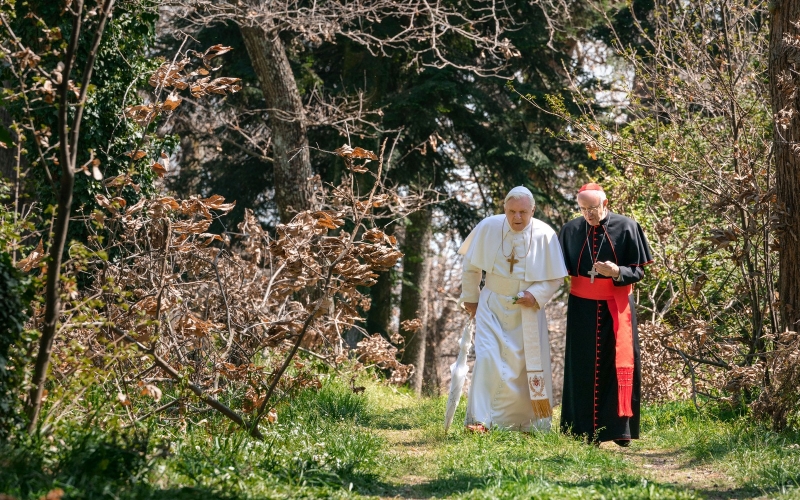 O roteiro de Anthony McCarten (indicado ao Oscar por "A teoria de tudo") constrói um encontro fictício entre o então cardeal argentino Jorge Bergoglio e o alemão Joseph Ratzinger, o papa Bento XVI, durante uma das maiores crises recentes da Igreja.
