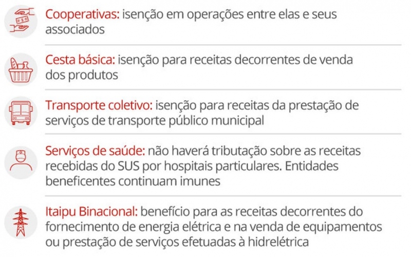 Ficarão livres também do pagamento da CBS igrejas, partidos políticos, sindicatos, fundações, entidades representativas de classe, serviços sociais autônomos, instituições de assistência social. De acordo com o Ministério da Economia, a nova contribuição incidirá sobre a receita de venda de bens e serviços e, portanto, as pessoas jurídicas que não exercem atividade econômica não serão tributadas.