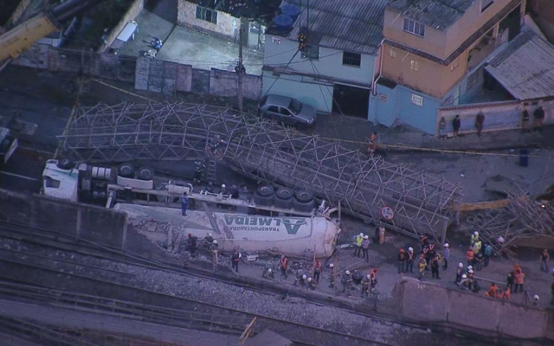 Caminhão tomba e derruba passarela do metrô em Acari, na Zona Norte do Rio — Foto: Reprodução / TV Globo