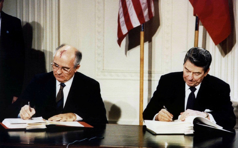 O tratado, assinado pelo presidente Ronald Reagan e o líder soviético Mikhail Gorbachev em dezembro de 1987, aboliu o uso de mísseis com alcance entre 500 e 5.500 km. Ele encerrou a crise dos mísseis europeus na década de 1980, provocada pela presença de ogivas nucleares SS-20 soviéticas dirigidas a capitais ocidentais.