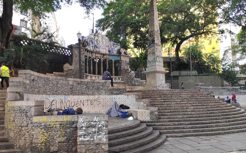 O local, que já foi considerado a “porta de entrada” da cidade, está com sua estrutura bastante deteriorada. Não é possível ver danos estruturais ao obelisco, mas as pichações chamam a atenção. São diversas pinturas em todo o complexo do largo: do obelisco ao pórtico de azulejos.