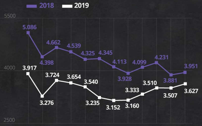 - houve 9.923 mortes a menos na comparação com 2018, uma queda de 19,2%