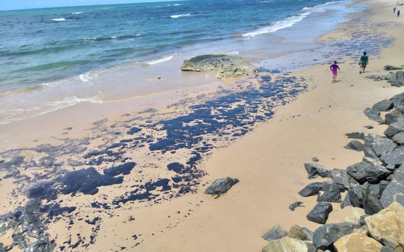 Manchas de óleo na praia de Lagoa do Pau, no município de Coruripe, em Alagoas — Foto: Pei Fon/Raw Image/Estadão Conteúdo
