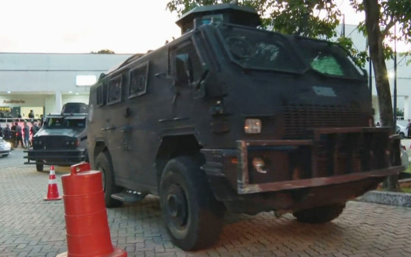 Blindados deixam a Cidade da Polícia — Foto: Reprodução/TV Globo