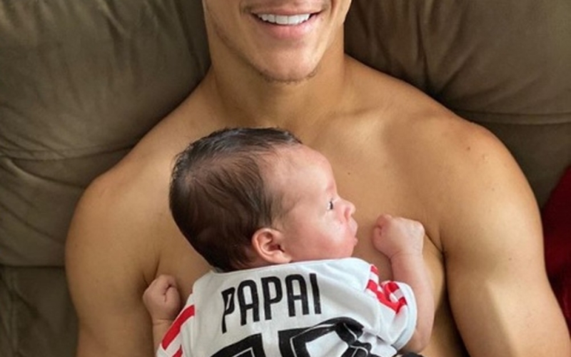 Antony, atacante da seleção sub-23 e do São Paulo, com o filho Lorenzo — Foto: Reprodução / Instagram