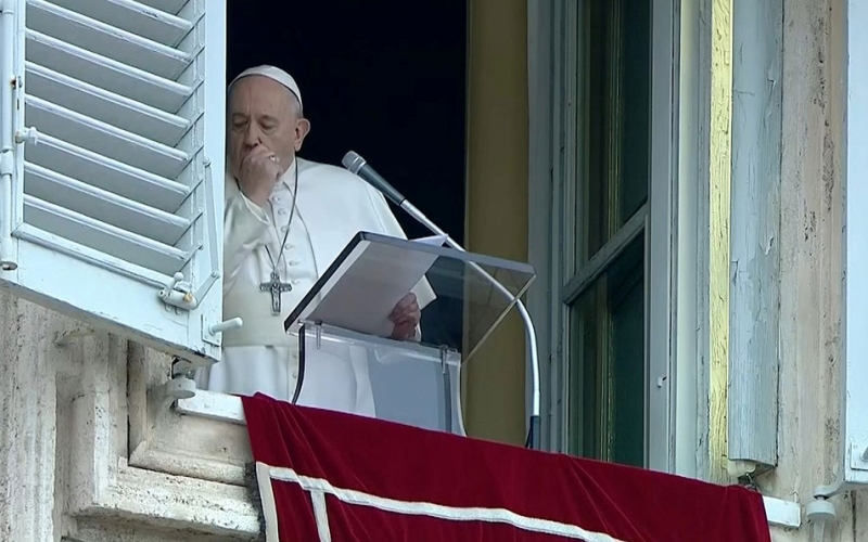 O líder católico romano de 83 anos apareceu na janela para se dirigir a milhares de pessoas na Praça de São Pedro para sua mensagem e bênção semanal ao domingo.