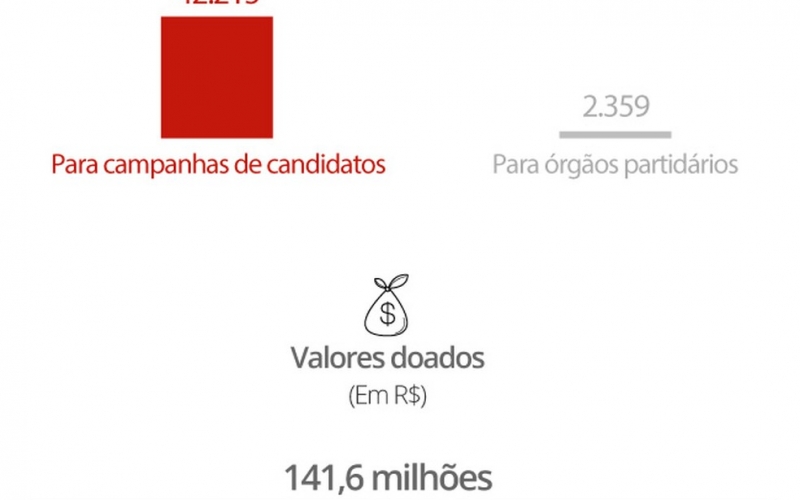 Já para os diretórios partidários o repasse ultrapassou R$ 100 mil apenas com cinco doadores. Para este levantamento, considerou-se a categoria “Recursos de pessoas físicas”, informada na prestação de contas eleitorais disponível no TSE.