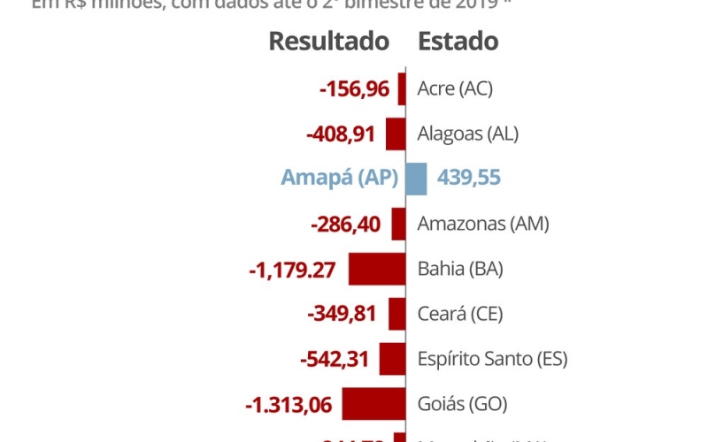 Os números levam em conta os resultados divulgados no Relatório Resumido da Execução Orçamentária (RREO) do Governo do estado, referentes ao segundo bimestre de 2019. Os estados são obrigados a divulgar esses balanços mas, até esta segunda-feira (10).