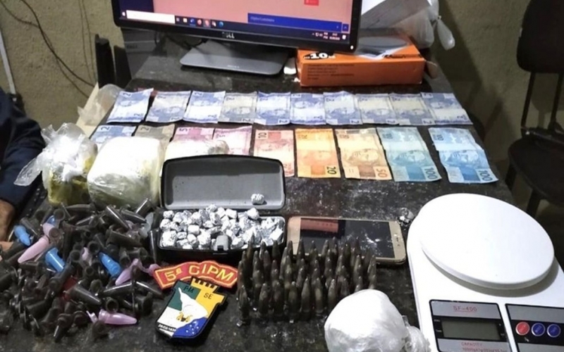 Segundo a Polícia Militar, por volta das 21 horas, os policiais receberam diversas denúncias sobre um intenso tráfico de drogas no povoado. No local, os militares encontram o suspeitos, que jogaram um objeto contendo 50 pinos com cocaína, e correram para uma casa.